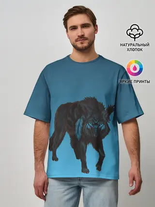 Мужская футболка оверсайз / черный дух волка