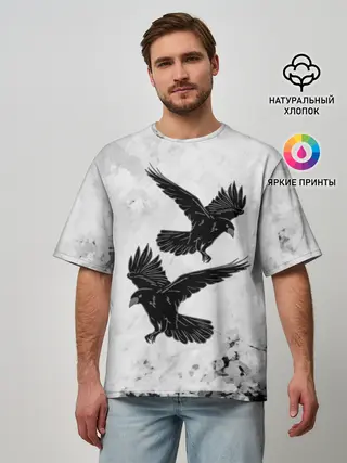 Мужская футболка оверсайз / Gothic crows