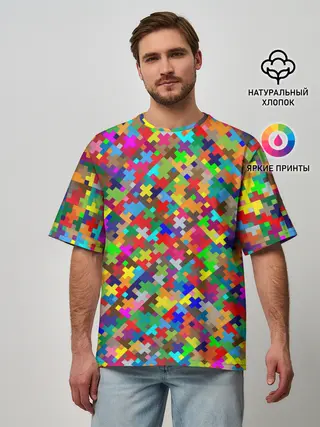 Мужская футболка оверсайз / РАЗНОЦВЕТНЫЙ ПАЗЛ
