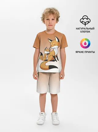Детская пижама с шортами / лис и лисенок