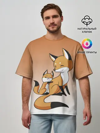 Мужская футболка оверсайз / лис и лисенок