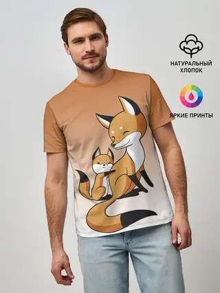 Мужская базовая футболка / лис и лисенок