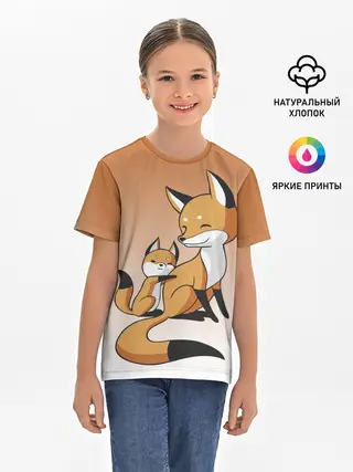 Детская базовая футболка / лис и лисенок