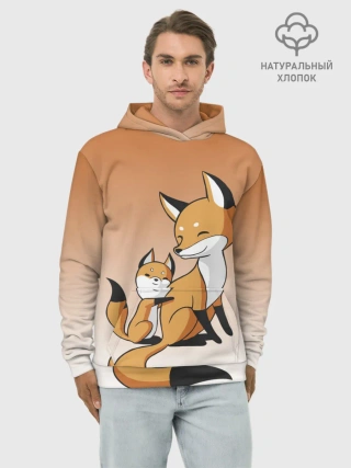 Худи мужской база хлопок / лис и лисенок