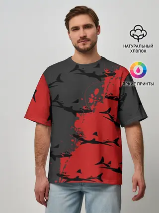 Мужская футболка оверсайз / Акулы