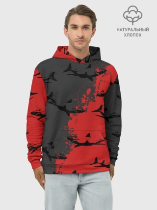 Худи мужской база хлопок / Акулы
