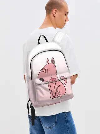 Лонгслив женский. Хлопок / Мопс в рюкзаке