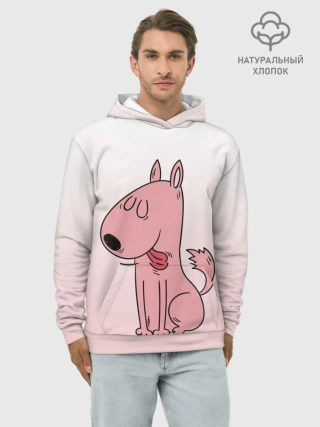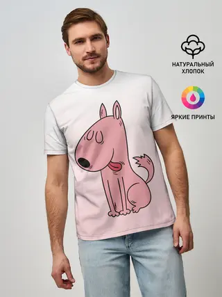 Лонгслив женский. Хлопок / Мопс в наушниках