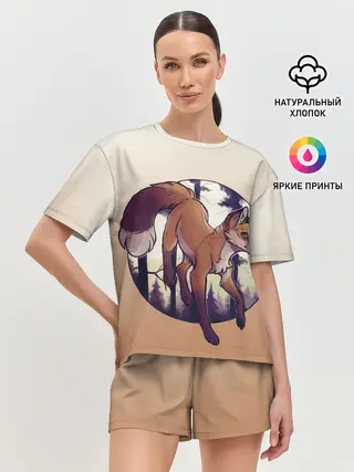 Женская футболка оверсайз / Лисица рисунок