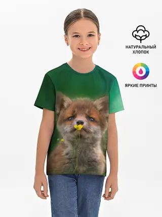 Детская базовая футболка / Лисенок нюхает цветок