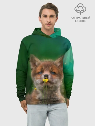 Худи мужской база хлопок / Лисенок нюхает цветок
