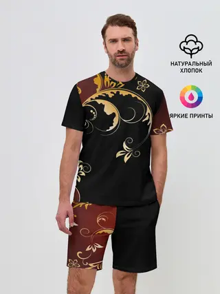 Мужской костюм с шортами / Узор - Хохлома