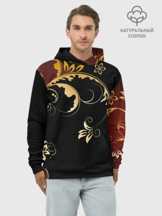 Худи мужской база хлопок / Узор - Хохлома