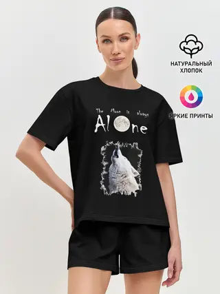 Женская футболка оверсайз / Волк и луна одиночки