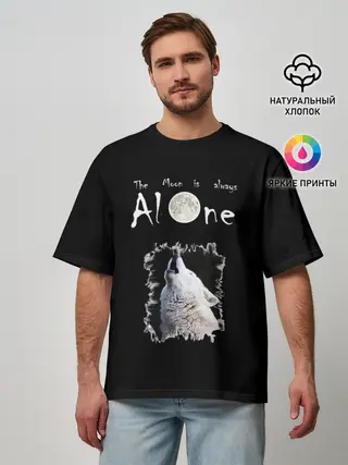 Мужская футболка оверсайз / Волк и луна одиночки