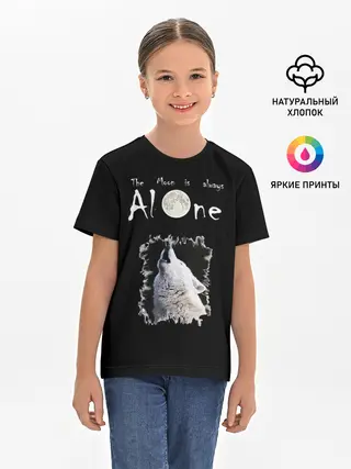 Детская базовая футболка / Волк и луна одиночки
