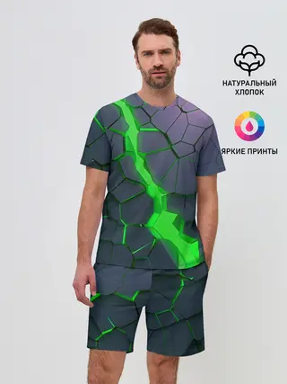 Мужской костюм с шортами / ЗЕЛЕНЫЙ РАЗЛОМ | 3Д РАЗЛОМ