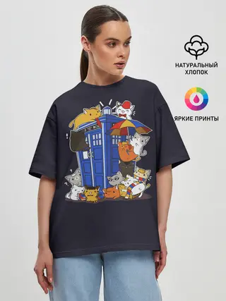 Лонгслив женский. Хлопок / Кошечки у Телефона