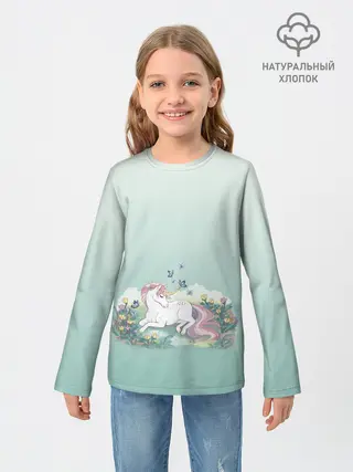 Детский лонгслив / единорог с бабочками