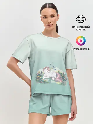 Женская пижама с шортами / единорог с бабочками