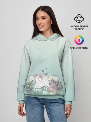 Женское худи / единорог с бабочками