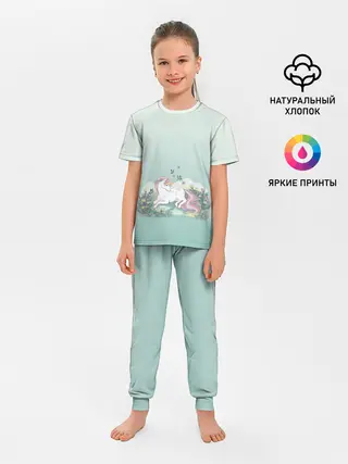Детская пижама с брюками / единорог с бабочками