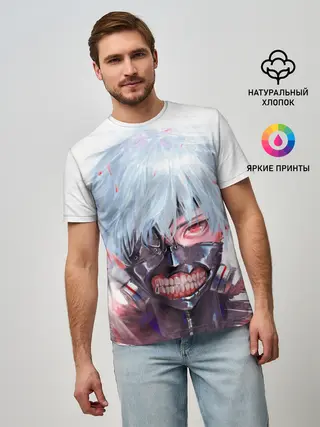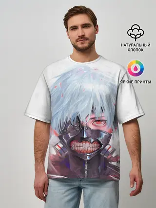 Мужская футболка оверсайз / Канеки Кен акварель