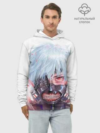 Худи мужской база хлопок / Канеки Кен акварель