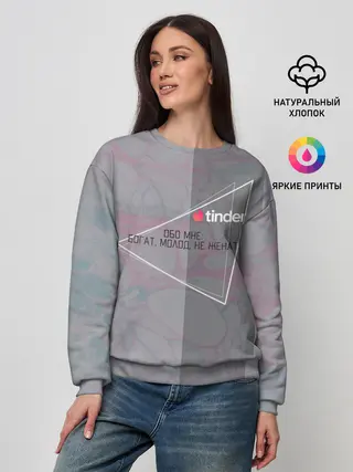Лонгслив женский. Хлопок / Tinder | Богат Молод Не женат