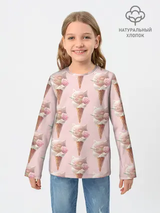 Лонгслив женский. Хлопок / Мороженное | Кошечки