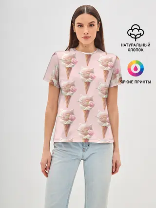 Лонгслив женский. Хлопок / Мороженое Рожок