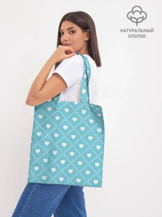 Шоппер база / Белые сердечки на голубом фоне