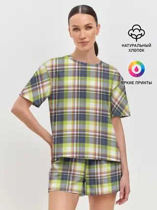 Женская пижама с шортами / Текстура в клетку