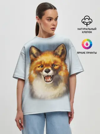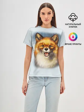 Лонгслив женский. Хлопок / Абстрактная лиса