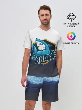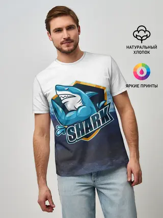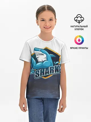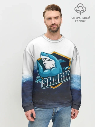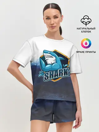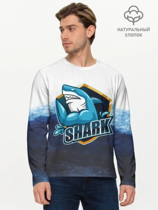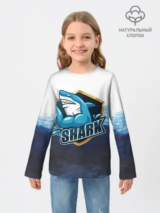 Лонгслив женский. Хлопок / Акулы и дайверы