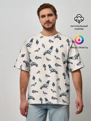 Мужская футболка оверсайз / Голуби