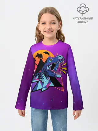 Лонгслив женский. Хлопок / Retrowave Neon Dinosaur