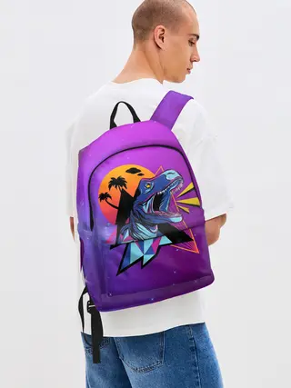 Рюкзак джинсовый / Retrowave Neon Dinosaur