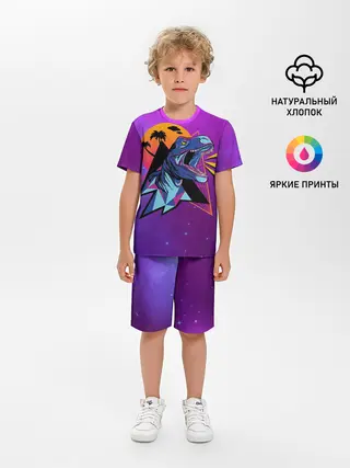 Детская пижама с шортами / Retrowave Neon Dinosaur