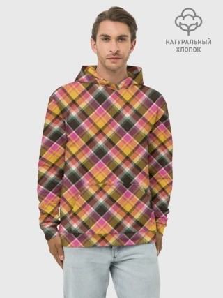 Худи мужской база хлопок / Клеточный узор