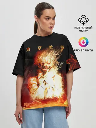 Женская футболка оверсайз / Огненый Канеки Кен
