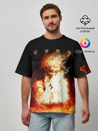 Мужская футболка оверсайз / Огненый Канеки Кен