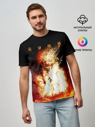 Мужская базовая футболка / Огненый Канеки Кен