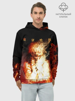 Худи мужской база хлопок / Огненый Канеки Кен