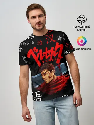 Мужская футболка оверсайз / Берсерк иероглифы паттерн