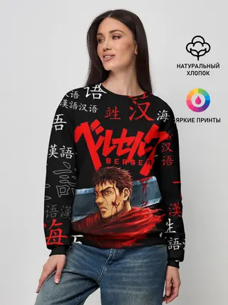 Лонгслив женский. Хлопок / Гатс разрубает тьму! БЕРСЕРК