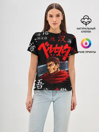 Женская базовая футболка / Берсерк иероглифы паттерн