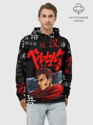 Худи мужской база хлопок / Берсерк иероглифы паттерн