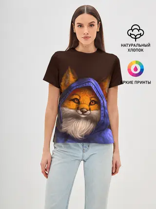 Женская базовая футболка / Лисенок в капюшоне