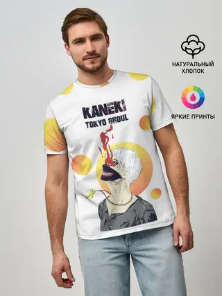 Мужская базовая футболка / Kaneki Ken желтые круги
